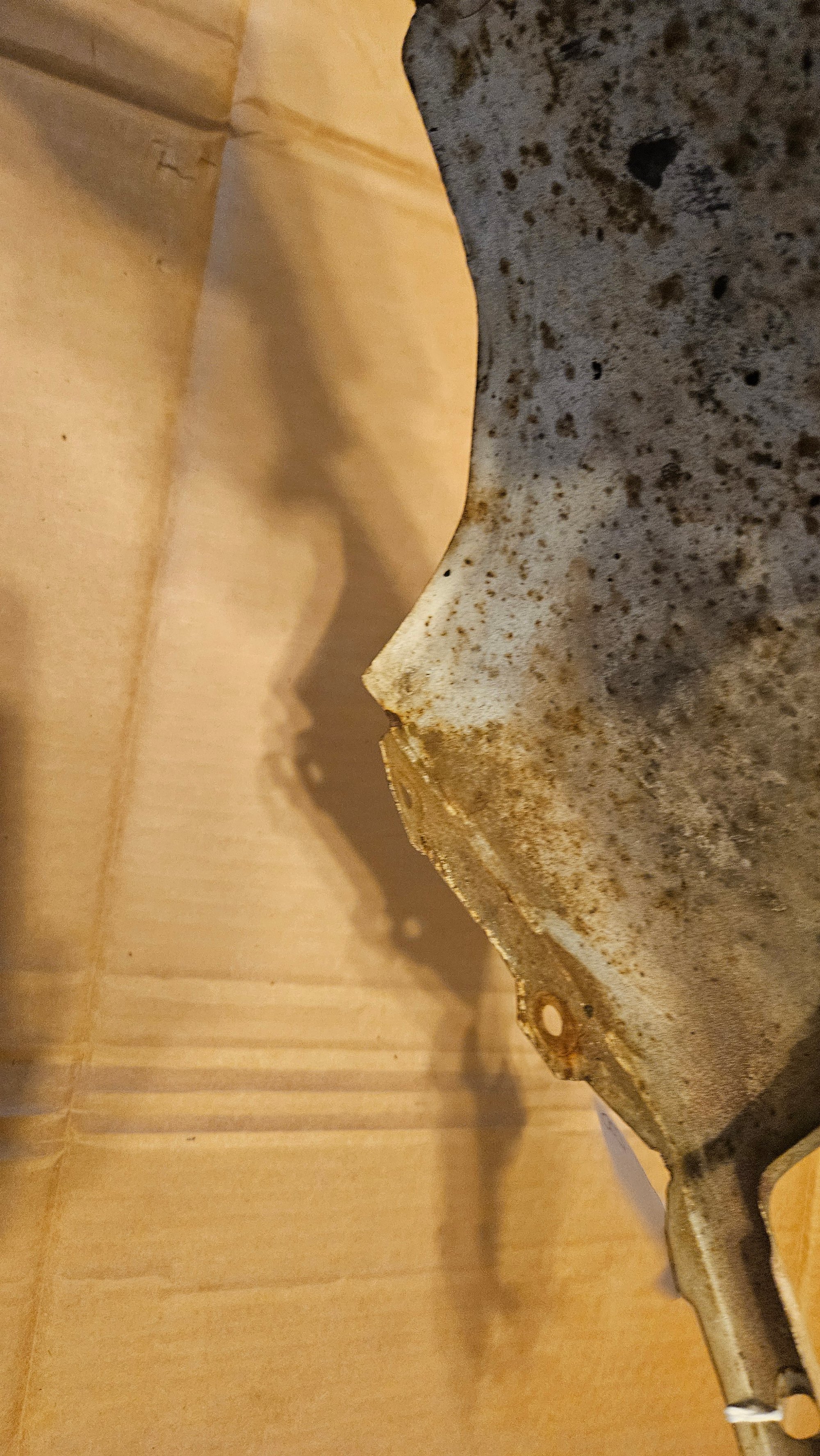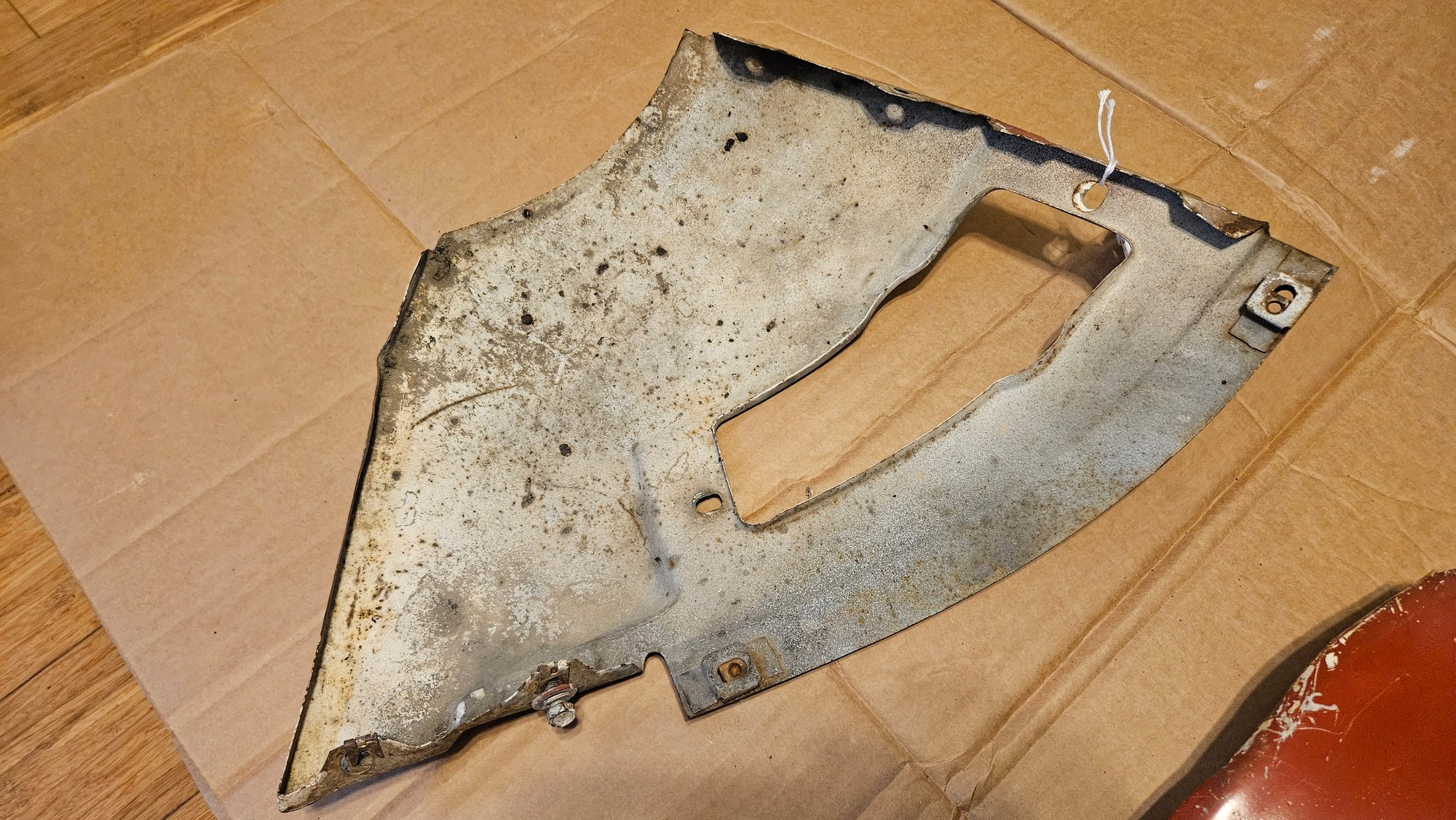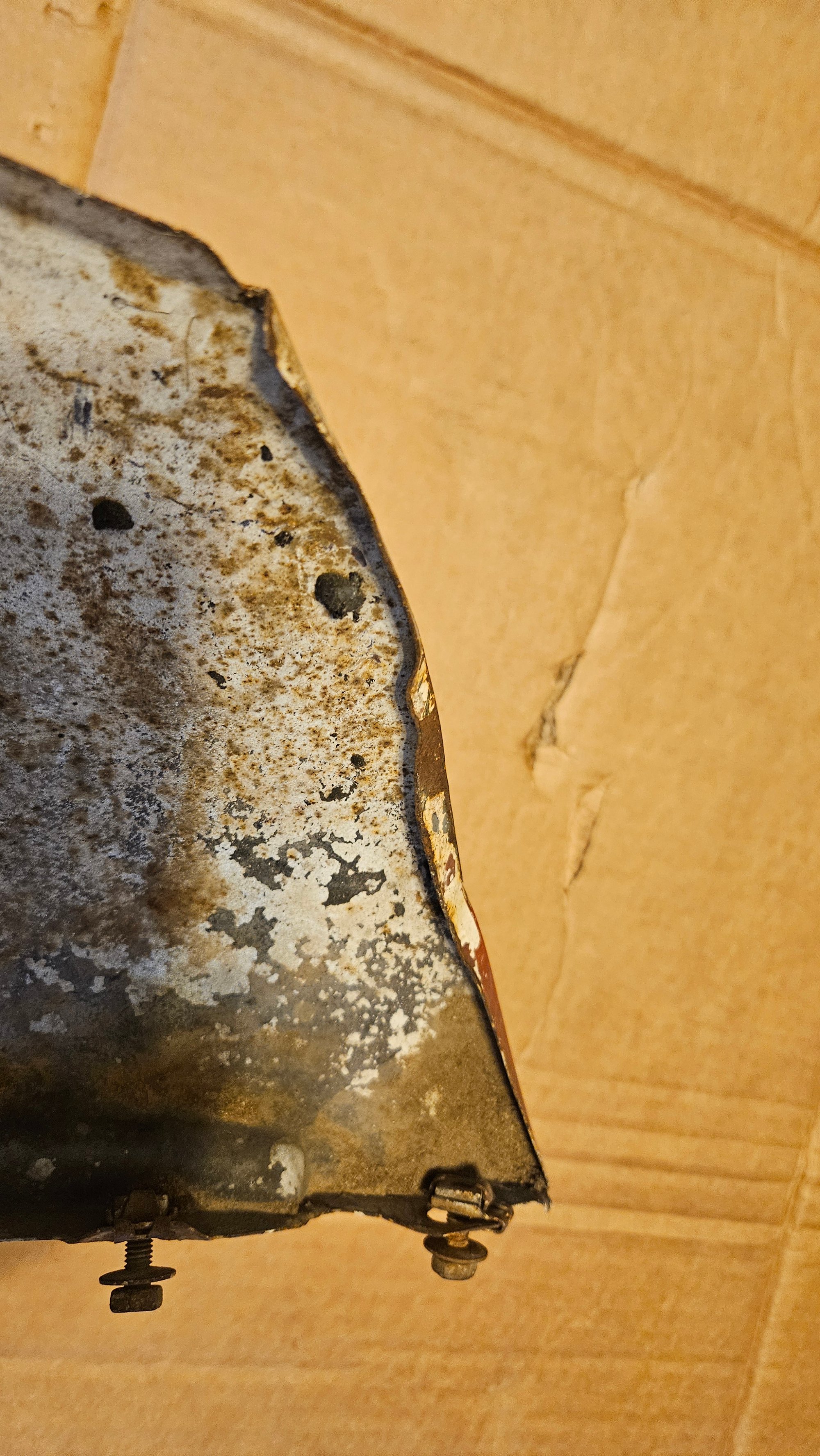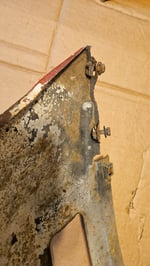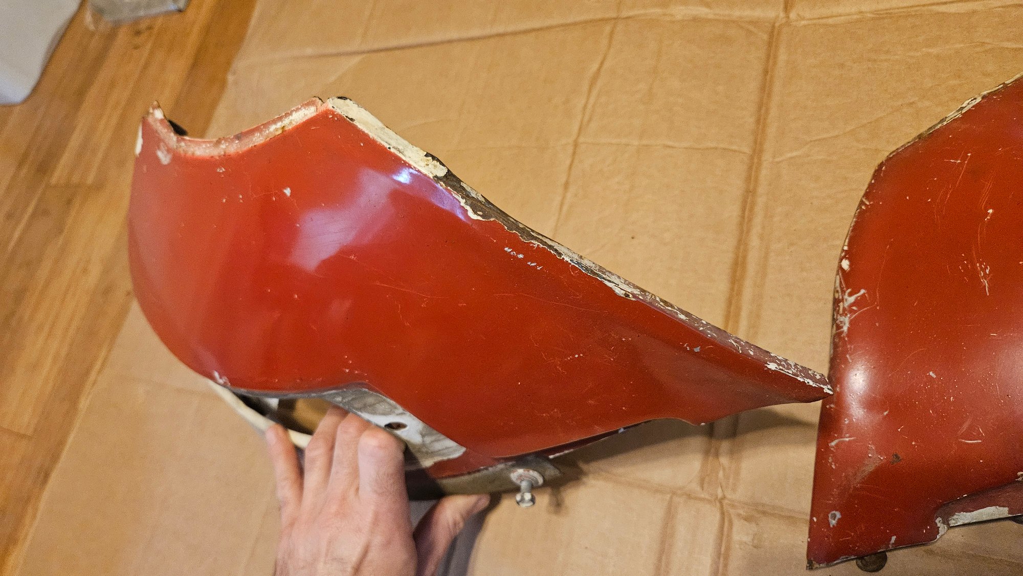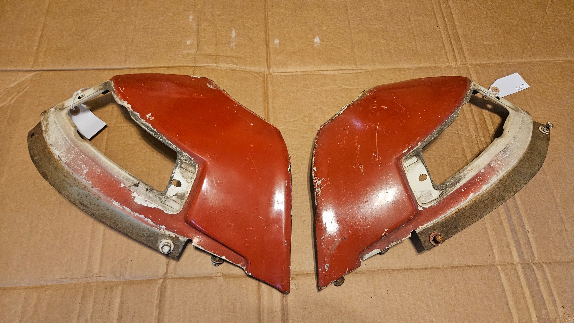 Not a bad set, but has seen a couple bad paint applications. No real rust to worry about. All capture nuts are present, no stuck bolts. No extra holes. No cut edges, but one has some repairable distortion. The mount flanges are good. Light dent or 2. A solid "B" condition part.