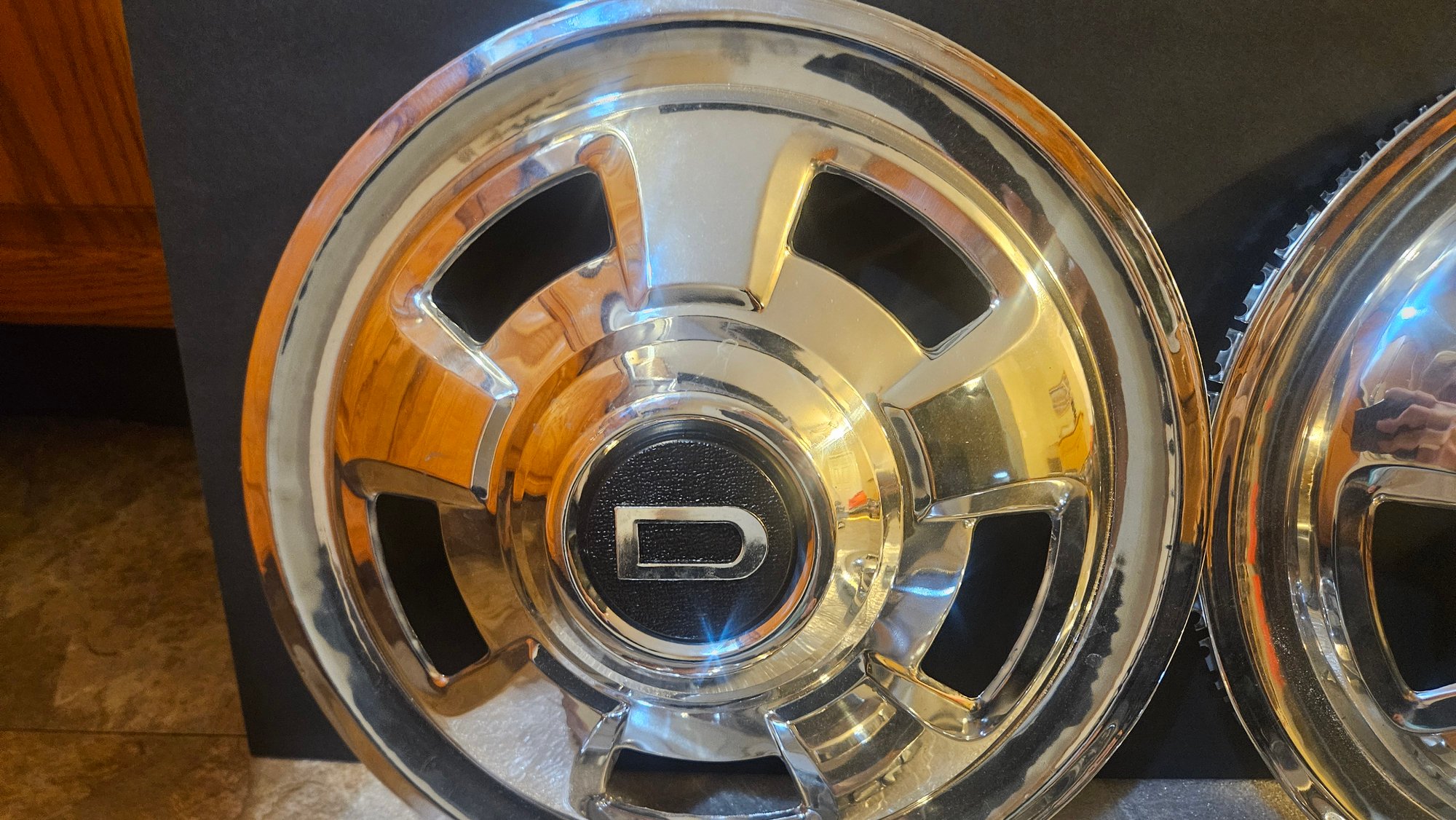 Set of 4 new reproduction hubcaps. Never installed. Will need to be painted your particular shade of grey.